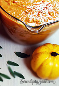 The sauce goes together very quickly.   Canned pumpkin is used because it is a  shortcut. It provides the same sweet flavor as butternut squash without the huge hassle of peeling, chopping, and roasting.  Just make sure that you are getting pure pumpkin and not pumpkin pie filling that has eggs and sugar mixed in.