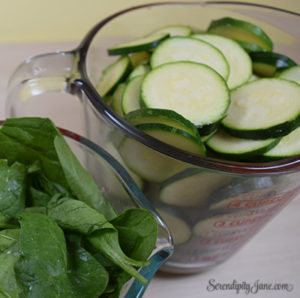 • 4 Cups zucchini thinly sliced with peels on, about 4 medium sized.