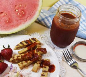 With summer right around the corner, it won’t be long before those luscious smoky sweet smells weft over the fence from your neighbors grill and into your backyard. Having the recipe for Tangy Barbeque sauce on hand along with the shelf stable ingredients, you will be able to satisfy those cravings as soon as they hit. This sauce is so delicious and tasty that served with grilled tofu “Chicken” strips, you’ll think you’re eating ribs! And, like all my recipes, it’s vegan and gluten free.