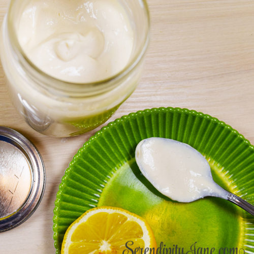 • Store the mayo in an airtight container in the refrigerator. I use a 2 cup Ball mason jar. Keep it refrigerated. If it is left out or kept beyond five days, the taste will change.  It may separate a tiny bit, but if so, just give it a stir.